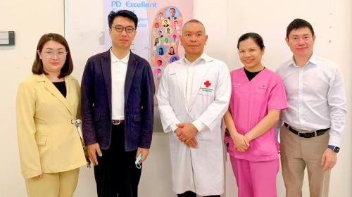 朱拉隆功國王紀念醫(yī)院腎科腹膜負責人Talerngsak Kanjanabuch教授高度評價東澤醫(yī)療近年在腹膜透析領(lǐng)域的創(chuàng)新與成就;并帶領(lǐng)泰國最頂尖的PD Excellence精英團隊與東澤醫(yī)療團隊就醫(yī)院管理、APD新臨床技術(shù)應(yīng)用、人才隊伍培養(yǎng)以及未來合作方向進行了深入探討。從2008年開始,泰國政府開始制定并實施“腹透優(yōu)先”政策,尿毒癥救治從420PMP提高到1073PMP,PD治療率從不到5%升高到約40%;患者生存率獲得大幅提高,患者個人支付費用縮減至不到1/10;政府開支也比預(yù)期大幅度縮減。