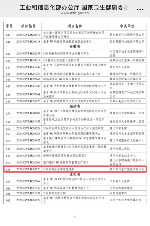 經(jīng)查,本次全國優(yōu)秀項目中沒有第二家腎臟病或尿毒癥診療項目入選、福建省內(nèi)也沒有第二個5G+遠程治療方向的入選項目。